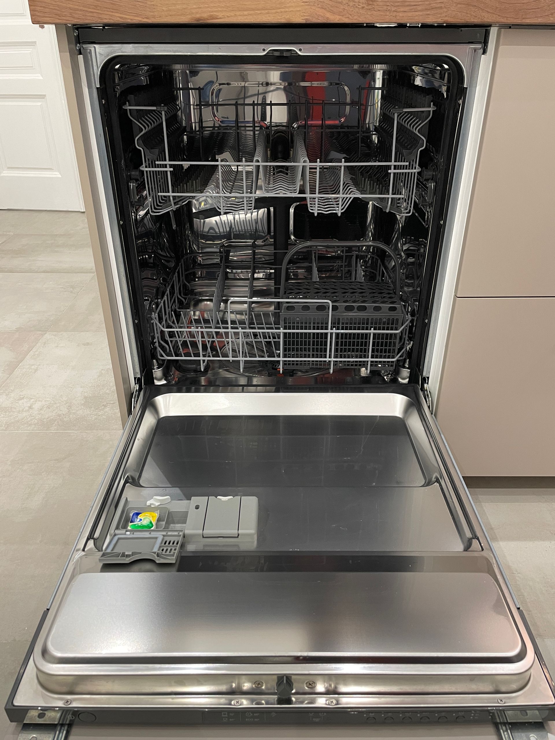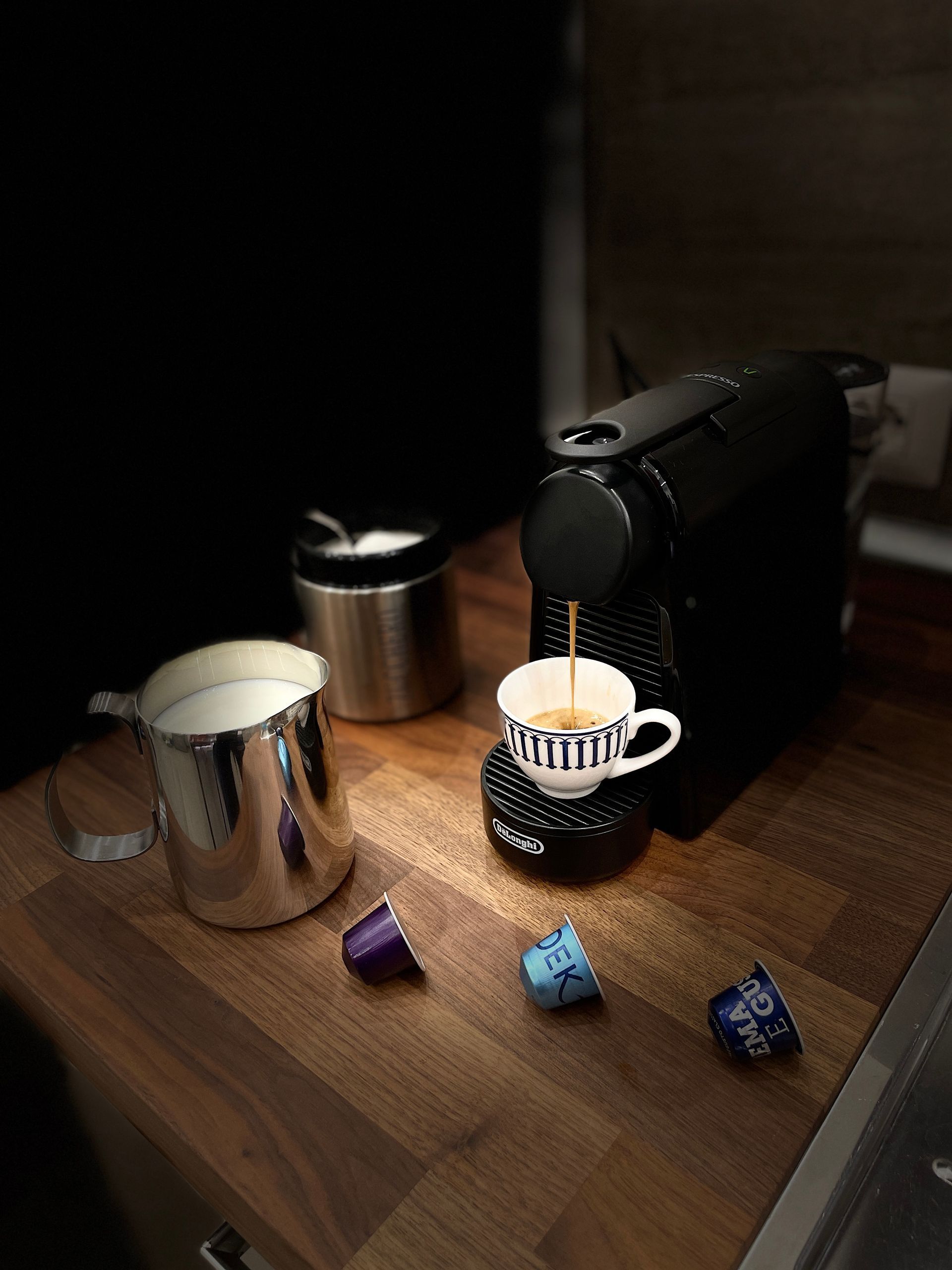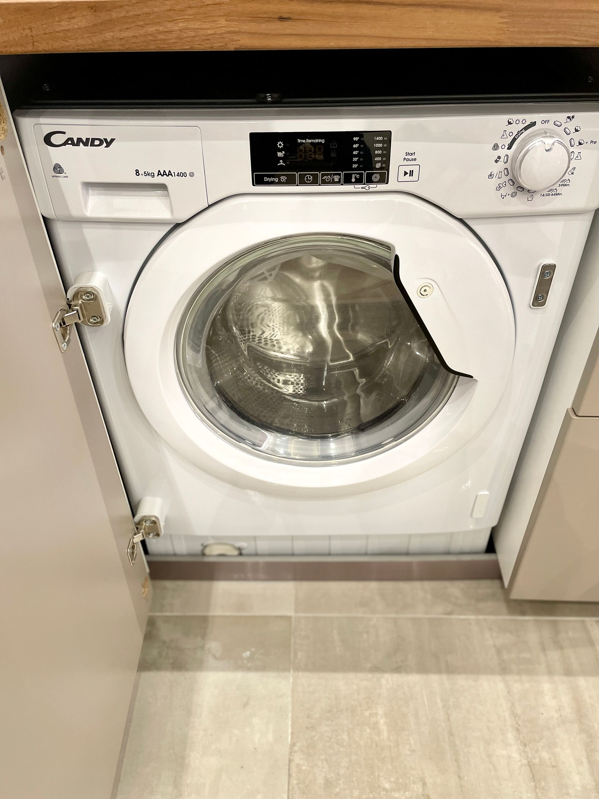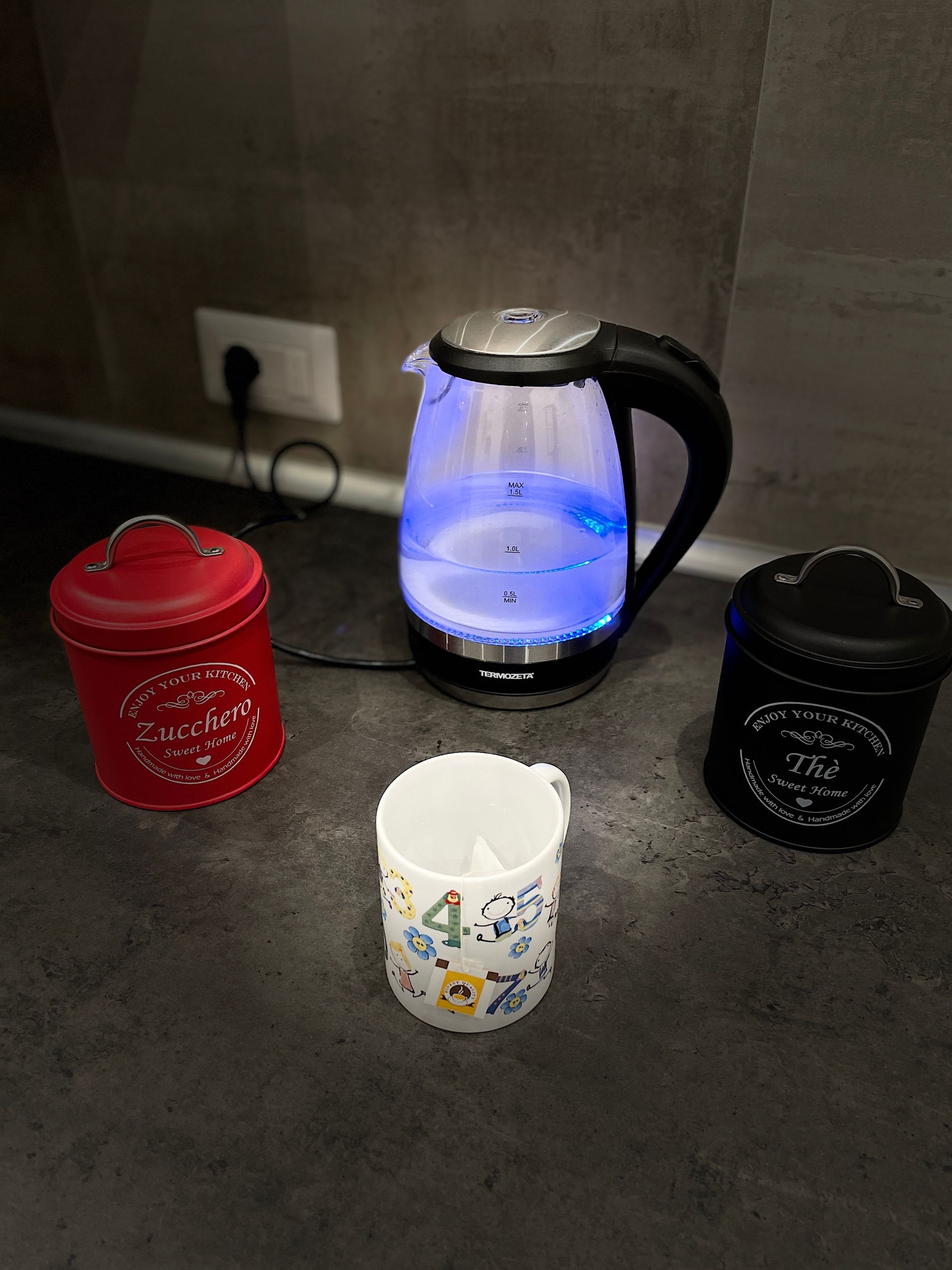- sala cucina con divano letto in pelle, climatizzatore, videocitofono, piano cottura ad induzione, lavabo, lavastoviglie, forno elettrico, lavasciuga, bollitore elettrico, frigorifero Samsung combinato, TV lcd Samsung da 32" e macchinetta per il caffè Nespresso;