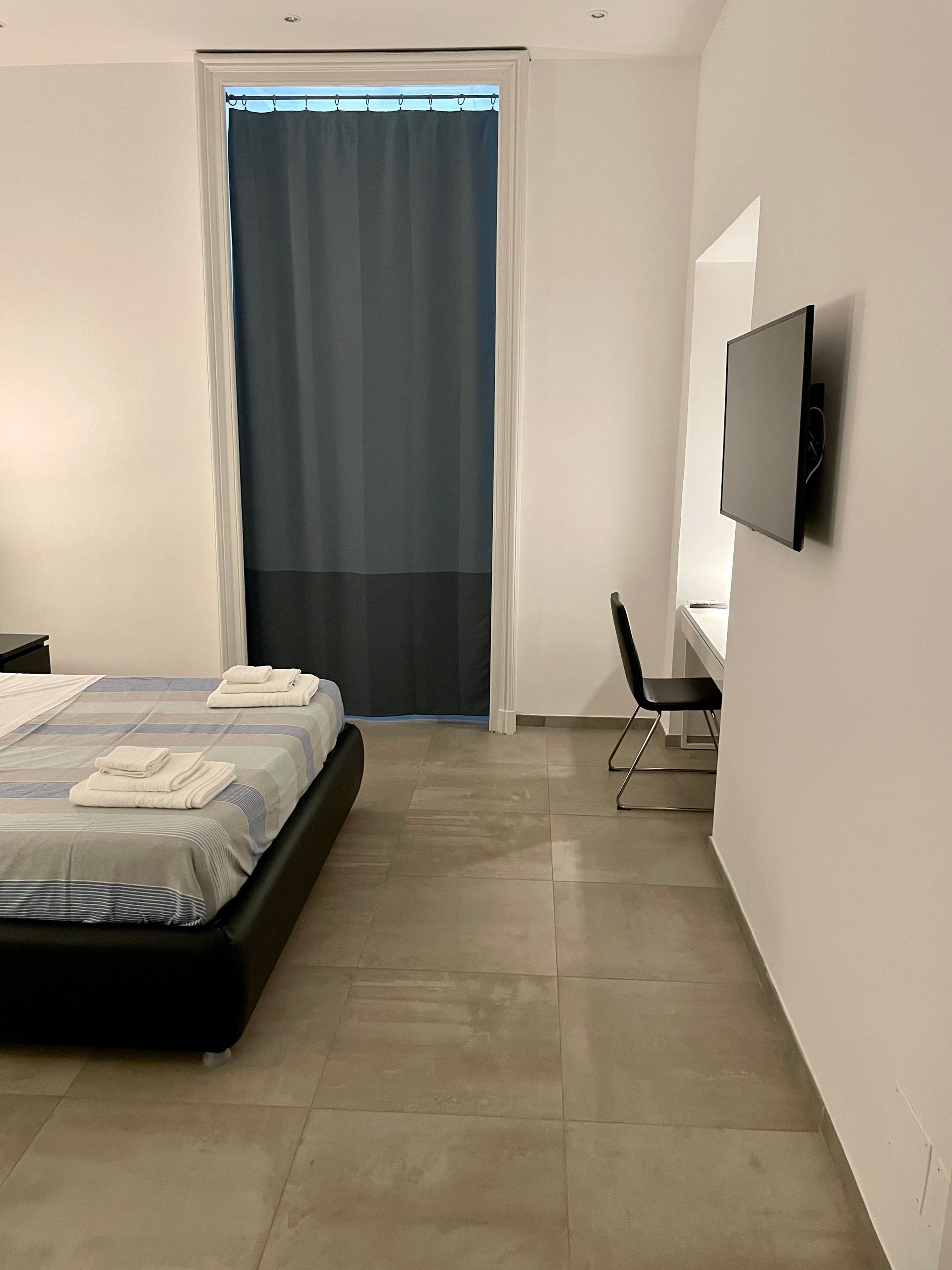 - spaziosa camera matrimoniale con ampio guardaroba specchiato ad ante scorrevoli, balconcino privato, TV smart lcd Samsung 43" e scrittoio.