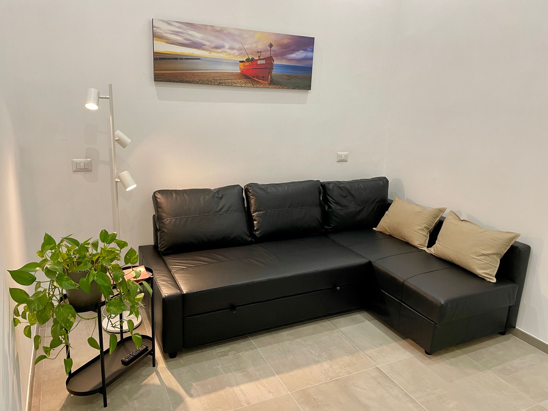 - camera relax di circa 15 mq con divano letto in pelle, guardoba e TV lcd Samsung da 32";